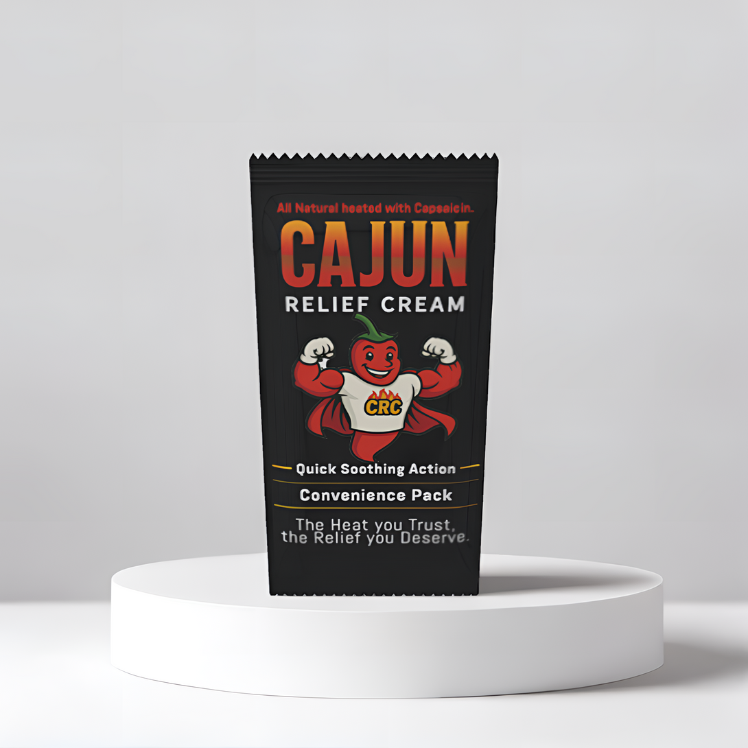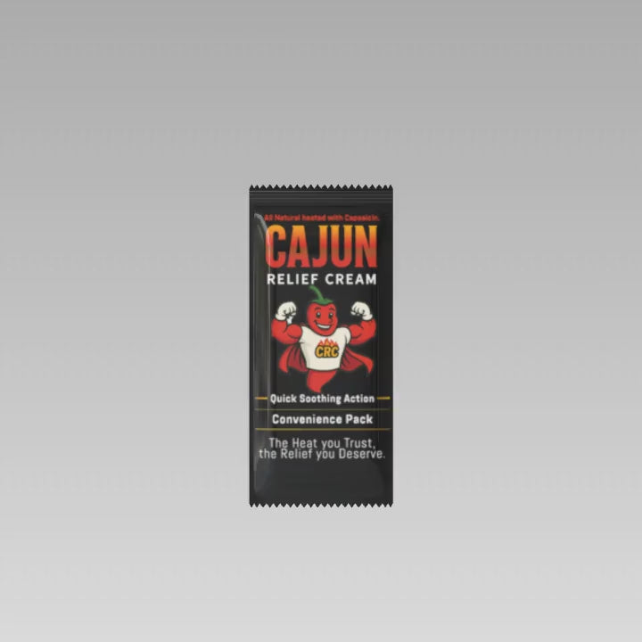 Packs the punch in a convenient little pouch. The Convenience Pack Box includes 30 individually wrapped packets of 8 ml of Cajun Relief Cream, the perfect impulse buy when customers are checking out.